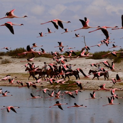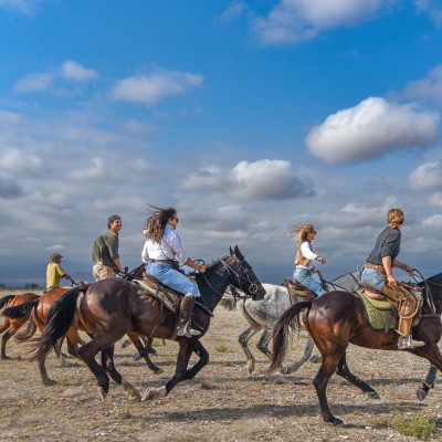 Along the way, you may encounter herds of buffalo, giraffes, zebras, and wildebeest—and with a bit of luck, even elephants, cheetahs, or the rare lion. Each day offers a new adventure: galloping across sun-baked lakebeds, tracking wildlife through acacia woodlands, visiting traditional Maasai bomas, and camping beneath the vast African sky.